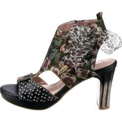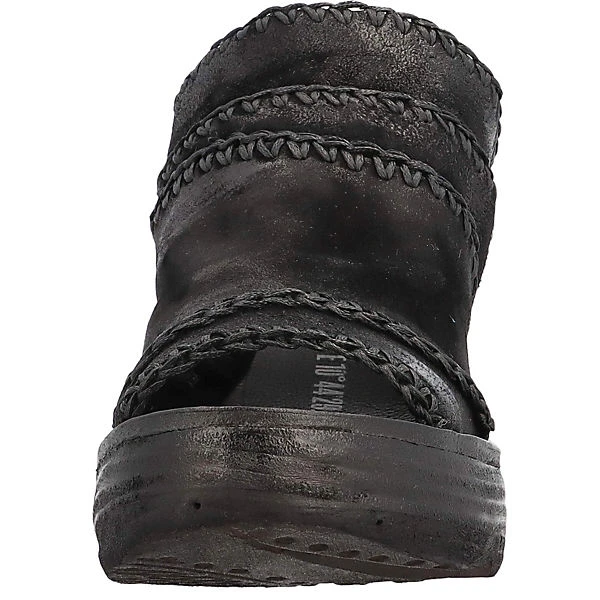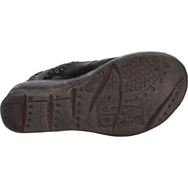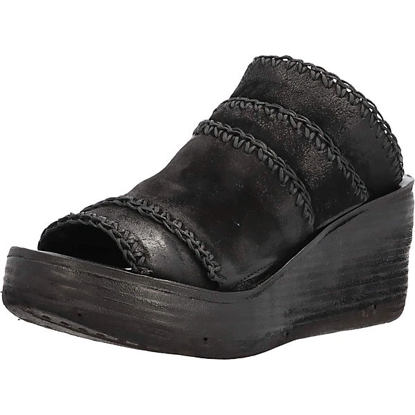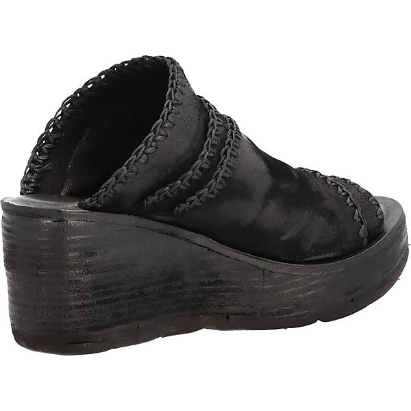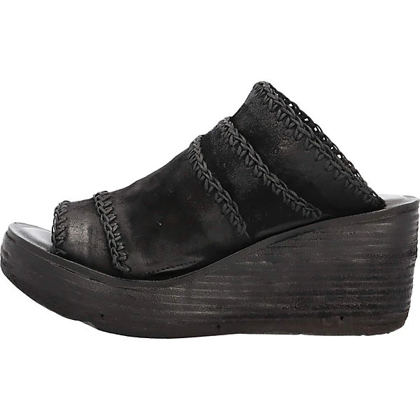 Komfortable Pantoletten mit weicher Innensohle, Keilabsatz auf Plateausohle und aufwändigem Upper mit Ziernähten im Ethno Look