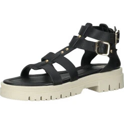 Ein echter Hingucker wird diese moderne und angesagte Sandale mit hochwertigem Leder und Nietendekor von Sansibar. Die Sandale kann vielseitig kombiniert werden und passt somit perfekt in den Alltag. Zusätzlich ausgestattet mit einem coolen Gladiator-Stil, ist dieser Schuh ein absoluter Hingucker.
