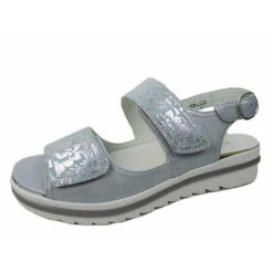 Schöne Sandalen von Waldläufer aus angenehm weichem und hochertigem Leder. Innen ist der Schuh mit einem cromfrei gegerbtem Leder ausgestattet. Der Schuh verfügt über eine etwas breitere Weite. Der Absatz ist durchgehend flach. Die Laufsohle ist aus Krepp. Der Klettverschluss zum einfachen und bequemen an- und ausziehen sorgt für einen guten Halt.Ebenfalls ist eine stufenlose Anpassung an den Fuß möglich. Die Schuhgröße fällt regulär aus.