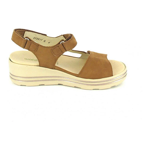 – moderne Sandalette von Waldläufer für Damen – Obermaterial feinstes Velourleder – praktischer Klettverschluss am Fersenriemen – Knöchelriemen mit breitem Klettverschluss – herausnehmbare Innensohle – Keilabsatz mit farblichen Highlights – Komfortweite „H“