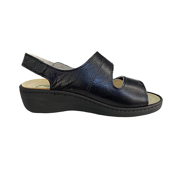 Obermaterial: Leder Innenmaterial: Leder Decksohle: Leder, Wechselfußbett Sonstiges: für orthopädische Maßeinlagen geeignet Verschluss: Klettverschluss Passform: Weite-H, weit Absatz: Keil ca. 3,5 cm Sohle: PU Laufsohle Art. Nr.: 4020-B21 Farbe: schwarz