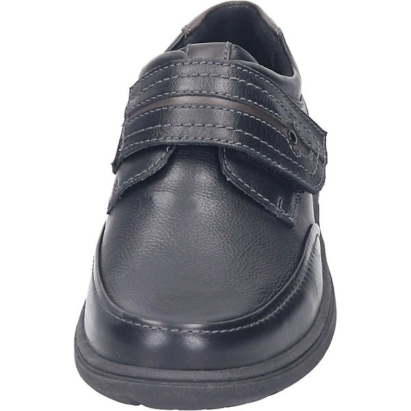 Bei diesem Produkt handelt es sich um einen Schuh aus der Kategorie Komfort-Slipper für Herren. Als Obermaterial wurde Glattleder verwendet und im inneren Bereich des Schuhs wurde Textilfutter und herausnehmbare Textildecksohle verarbeitet. Die Schuhweite dieses Artikels ist bequeme Weite und somit etwas breiter. Als Verschlussart wurde Klettverschluss gewählt und die TR-Sohle rundet das Produkt ab.