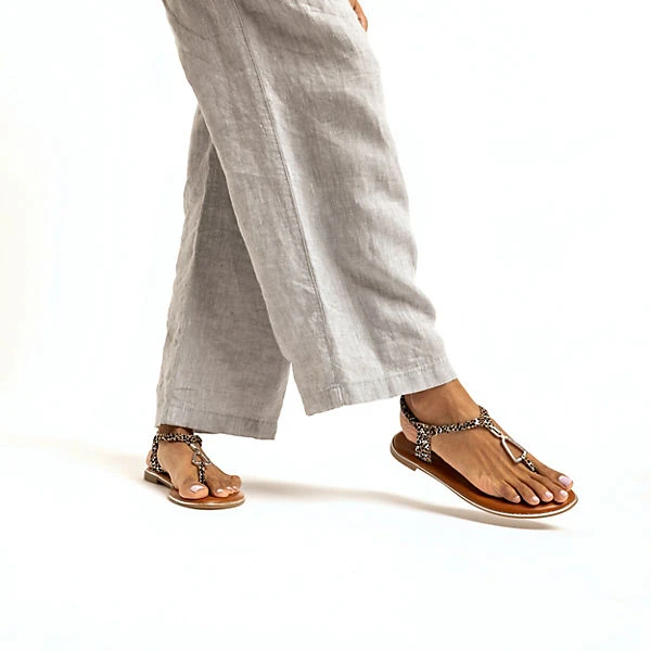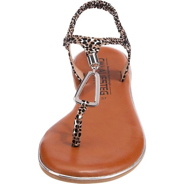 Die modisch gestalteten T-Steg-Sandaletten von der Marke Laufsteg München ergänzen deinen Look. Für einen angenehmen Sitz am Fuß sorgt das elastische Band. Das ansprechende Synthetik-Obermaterial ergänzt die Aufmachung dieses Paares.
