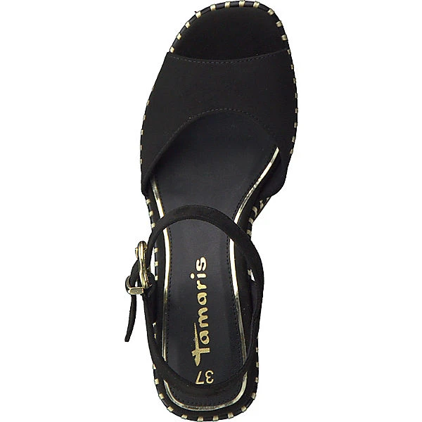 Diese Tamaris Absatz-Sandale zeichnet sich durch das anpassungsfähige Textil-Obermaterial aus. Die Schuhspitze in karrèe-Form in Kombination mit dem 10.5 cm hohen Blockabsatz lässt ihren Fuße feminin und grazil wirken.