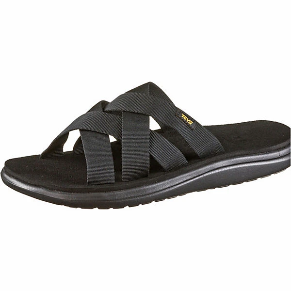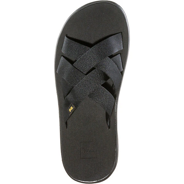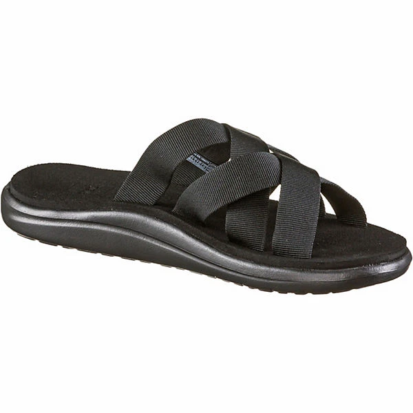 Strapazierfähige Sandalen mit überkreuzten Riemen aus Textil; weiches, vorgeformtes Fußbett; rutschfeste Gummi-Außensohle mit Profil; Material aus Textil und Synthetik.